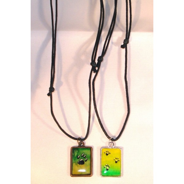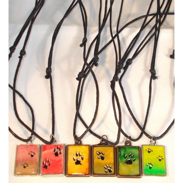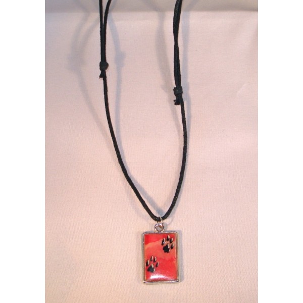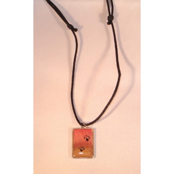Kaunis, käsinmaalattu ja suorakaiteen mallinen koru tassuaiheella. Materiaali: kupari tai hopea ja polymeerimassa. Ei sisällä nikkeliä. Sisältää mustan nauhan, jonka pituutta voidaan säätää helposti. Koko: 2,4 cm x 1,8 cm. Useita eri värejä. Tilauksesta saatavilla myös muita värejä. Pakataan kauniiseen pakettiin, helpoo antaa vaikkapa lahjaksi. Ilmoitathan tilatessasi haluamasi koruvaihtoehto. Tekijä: Zyrifrost / Kirsi Lehtosaari