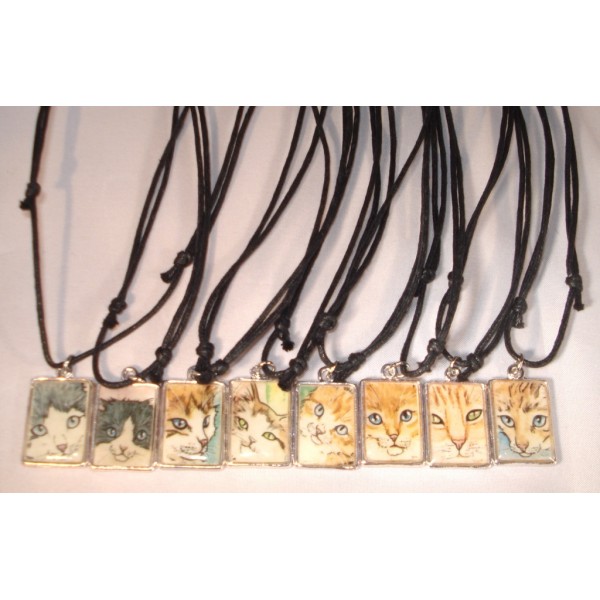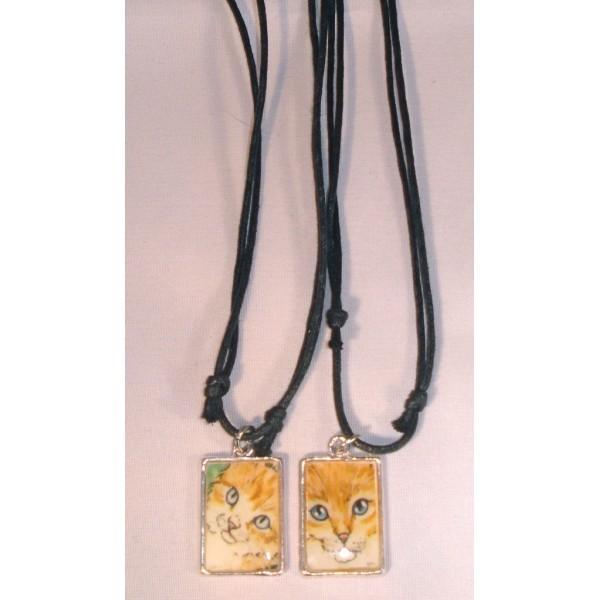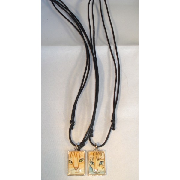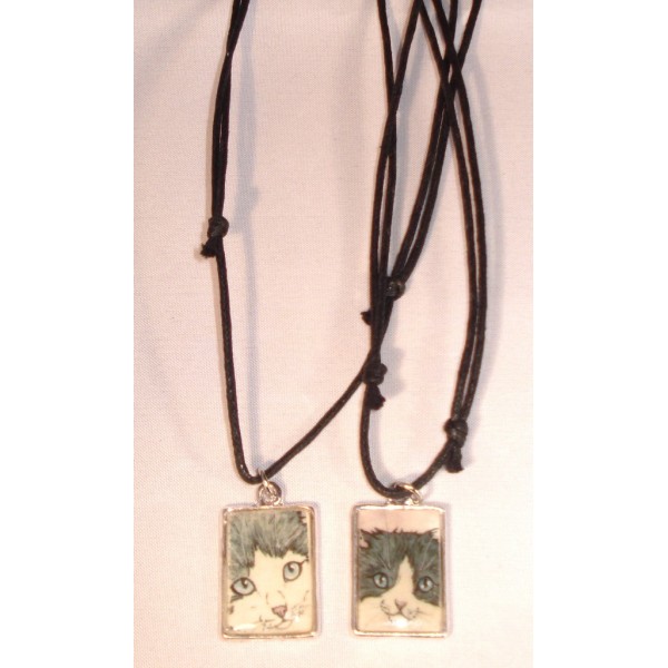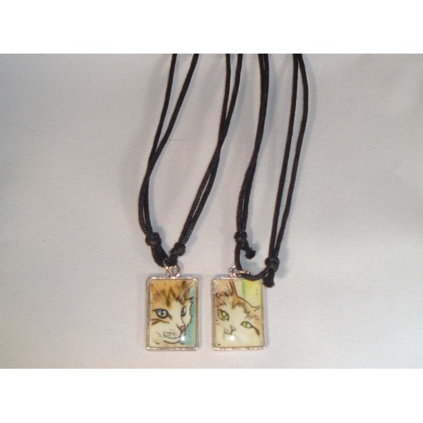 Kaunis, neliskanttinen koru kissa-aiheella. Materiaali: printtikuva, polymeerimassa (pinnoite), sinkkiseos ja aitohopea (rengas). Ei sisällä nikkeliä. Sisältää mustan puuvillanauhan, jonka pituutta voidaan säätää helposti. Koko: 2,8 cm x 1,7 cm. Useita eri värejä. Tilauksesta saatavilla myös muita värejä. Kiva idea vaikkapa lahjaksi ystävälle. Ilmoitathan tilatessasi haluamasi koruvaihtoehton. Tekijä: Zyrifrost / Kirsi Lehtosaari