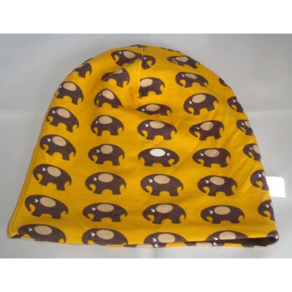 Hauska, eläinaiheinen ja ihanan pehmeä hattu niin lapsille kuin aikuisillekin. Aiheena suloiset norsut. Eri kokoja, eritelty alapuolella. Ilmoita tilatessasi haluamasi koko. Väri: keltainen, vuori ruskea. Materiaali: 80 % puuvillaa ja 20 % polyesteriä. Hoito: Pesu 40 asteessa, silitys **, ei kloorivalkaisua tai rumpukuivausta. Tekijä: Peikkolapset / Kaisa Kauranne