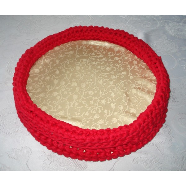 Kaunis ja yksilöllinen käsinvirkattu kissanpesä. Sisältää käännettävän patjan, mikä on toiselta puolelta vaaleankeltainen ja toisella puolen viininpunainen. Voit valita mieleisen värin ja/tai kääntää patjan myöhemmin vaihteen vuoksi toisinpäin. Väri: punainen. Halkaisija noin 38 cm, korkeus noin 9 cm, patjan vahvuus 2 cm. Materiaali: kissanpesä trikookudetta, patjan päällinen toiselta puolen (vaaleankeltainen) polyesteriä ja toiselta puolelta (viininpunainen) puuvillaa, sisusta vaahtomuovia. Voidaan kokonaisuudessaan pestä pesukoneessa, mikä tekee pesän käytöstä helppoa. Kiva lahjaidea kissakotiin :) Sopii hyvin myös vaikkapa kissan näyttelyhäkin sisustukseksi. Tekijä: Lilinella