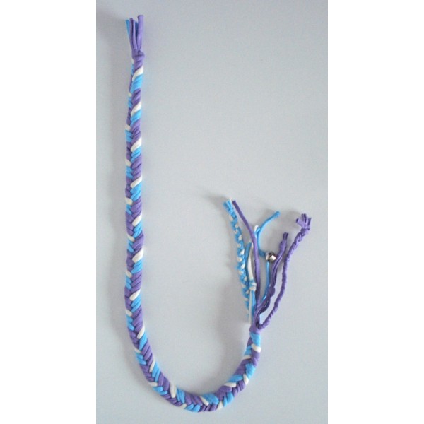 Kiva letitetty lelu kissalle. Sopii hyvin saalistusleikkeihin. Lelun toisessa päässä on erilaisia hapsuja, jotka kiinnittävät kissan huomion. Mukana myös kulkunen. Monikäyttöinen. Heiluttelemalla lelua ilmassa tai vauhdikkaasti lattiaa pitkin, useimmat kissat eivät voi vastustaa lelua. Pituus: noin 100 cm. Materiaali: trikookude. Useita eri värejä. Jokainen lettilelu on uniikki. Voit halutessasi toivoa lettilelun tehtävän myös lempiväreistäsi. Valitse tällöin valikosta vaihtoehto "Toiveväri" ja ilmoita tilatessasi 1-3 toiveväriä. Voidaan pestä 40 asteessa pesukoneessa. Valmistaja: Lilinella