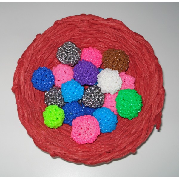 Kirkkaan värinen, virkattu ja kova pallolelu kulkusella. Useita eri värejä. Koko: Halkaisija noin 3-4 cm. Materiaali: muovinaru ja kulkunen. Pitää hyvin muotonsa. Vierii iloisesti lattialla. Sopii hyvin saalistusleikkeihin. Kulkusen ääni houkuttelee kissaa tai pientä koiraa/koiran pentua leikkimään. Turvallinen, sillä ei sisällä irtoavia osia. Voidaan tarvittaessa pestä käsin. Näitä et löydä muualta! Tekijä: Lilinella