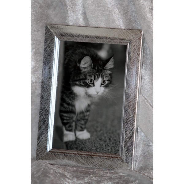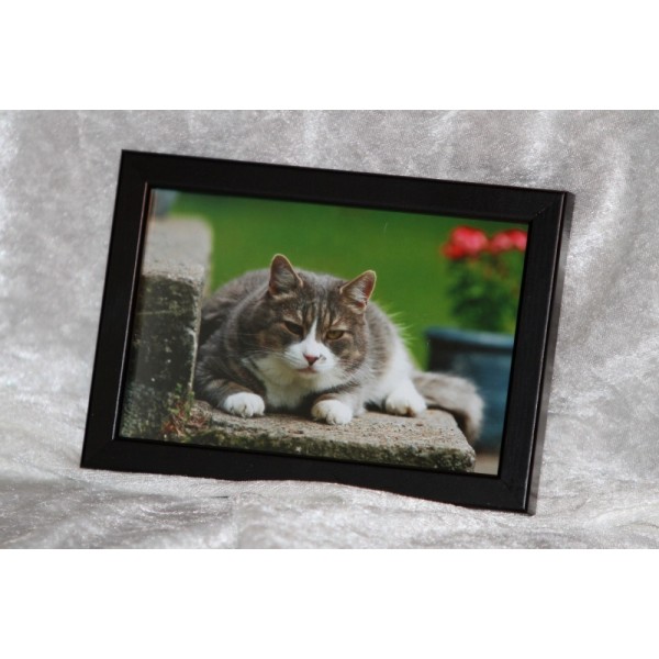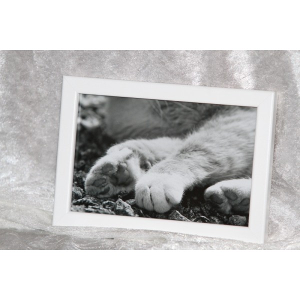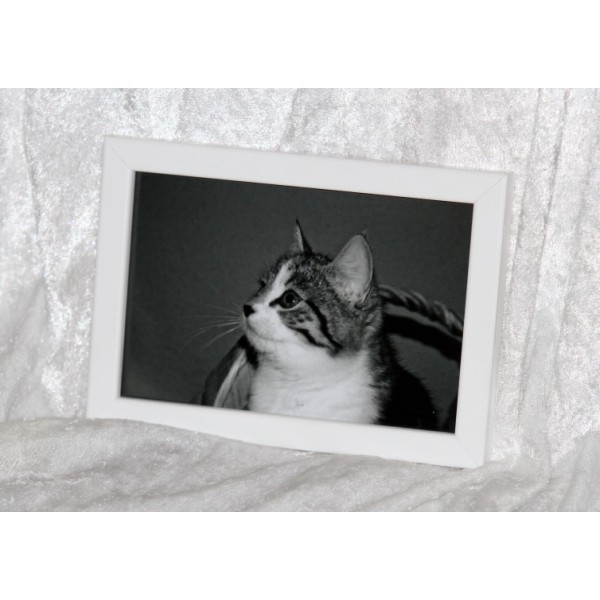 Kaunis eläinaiheinen valokuvasisustustaulu. Tauluissa seikkailevat erilaiset hellyyttävän suloiset eläimet, kuten kissat, koirat, hevoset ja linnut. Osa kuvista on värillisiä, osa mustavalkoisia. Kuvien koko 10 cm x 15 cm. Sisältää kehyksen , jossa suojalasi ja kätevä tukijalka. Kehysten väri ja materiaali vaihtelee: musta ja valkoinen puuta (leveys noin 1,2 cm), hopea myös puuta, mutta päällä muovipinnoite (leveys noin 2,1 cm). Kiva lahjaidea eläinystävälle. Tekijä: Wilhelmiina Keränen