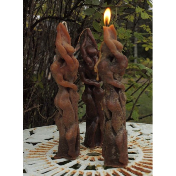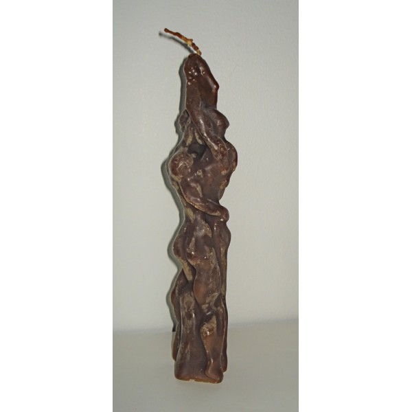 Kaunis käsin valettu kynttilä. Kynttilä esittää syleilevää, toisiin kietoutuvaa pariskuntaa. Saatavilla eri värejä ja tuoksuja, myös tuoksuttomia versioita. Varastossa valmiita väri & tuoksuyhdistelmiä (eritelty alapuolella), saatavilla tilauksesta myös omalla väri & tuoksuyhdistelmällä (vaihtoehdot alapuolella). Materiaali: parafiini, steariini ja mahdollinen kosmetiikkatuoksu. Koska kynttilät on valettu käsin, saattaa pieniä sävyeroja esiintyä. Koko: pituus noin 25 cm, leveys noin 5 cm. Hieno lahjaidea esim. tupaantulijaisiin, kihlajaisiin tai häihin, myös joulukotiin. Tällä kynttilällä luot tunnelmaa syys- ja talvi-iltoihin. Pakataan kauniiseen sellofaaniin. Tekijä: Akan Paja / Marjo Akkanen