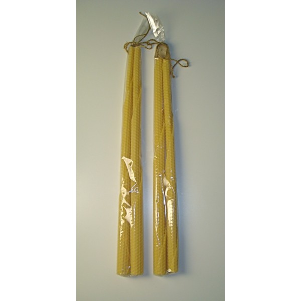 Ihana hunajantuoksuinen kynttilä. Materiaali 100 % mehiläisvahaa. Väri: luonnollisen keltainen. Pituus noin 43 cm. Valmistettu mehiläisvahalevystä kiertämällä. Kynttilä kapenee hieman yläosaa kohti. Pakattu sellofaaniin. Paketti sisältää kaksi mehiläisvahakynttilää. Kiva lahjaidea ystävälle. Tekijä: Zyrif Oy / Kirsi Lehtosaari