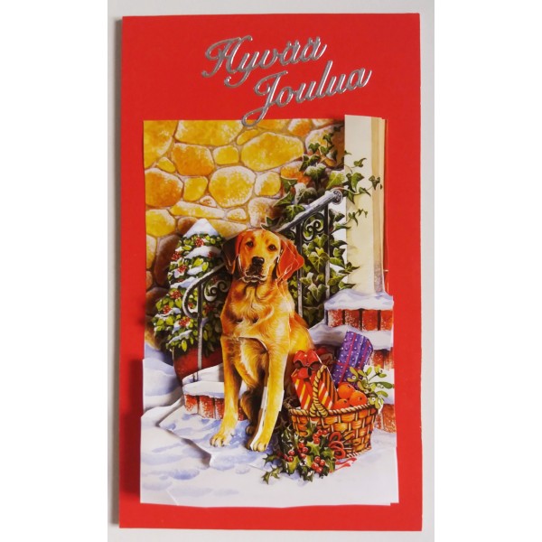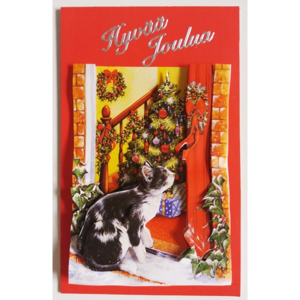 Kaunis yksiosainen käsintehty joulukortti eläinystävän kuvalla. Kissa- ja koira-aihe. Koristeena 3D-kuvio ja tekstitarra. Koko 8,5 cm x 13,5 cm. Sisältää kirjekuoren. Tällä jouluisella kortilla on kiva lähettää terveisiä ystäville ja sukulaisille. Tekijä: Lilinella