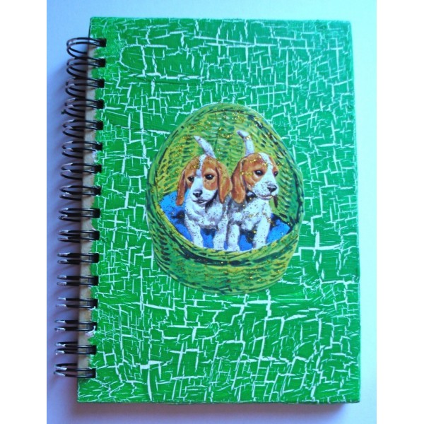 Vihreä = kaksi koiranpentua korissa