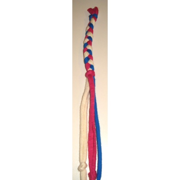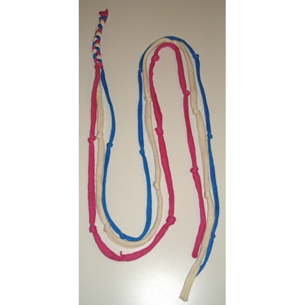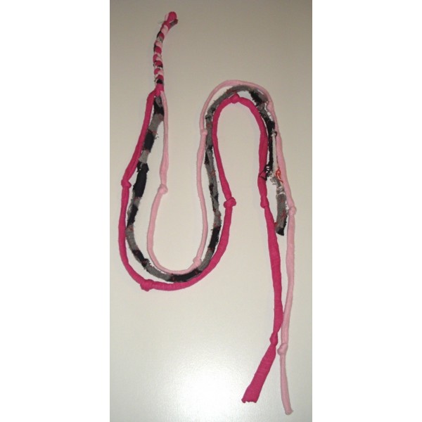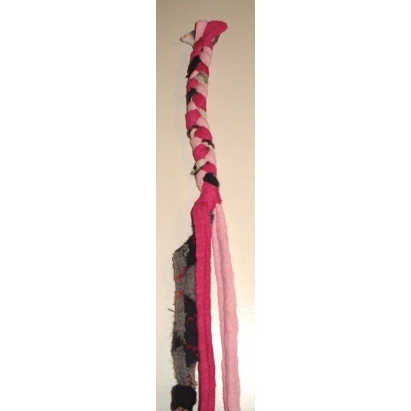 Kissan narulelu, jossa hapsuja ja solmuja. Pituus: noin 90 cm. Pisimmillään (avattuna hapsut eri suuntiin) noin 160 cm. Materiaali: Hieman joustava trikookude. Eri värejä. Voidaan pestä 40 asteessa pesupussissa. Turvallinen, sillä ei sisällä irtoavia osia. Narulelu on monikäyttöinen, sillä sitä voi vetää perässä, sen voi ripustaa roikkumaan tai heilutella ilmassa kissan mieltymysten mukaan. Sopii mainiosti saalistusleikkeihin. Voit halutessasi toivoa lelun tehtävän myös lempiväreistäsi. Valitse tällöin valikosta vaihtoehto "Toiveväri" ja ilmoita tilatessasi 1-3 toiveväriä. Valmistaja: Lilinella