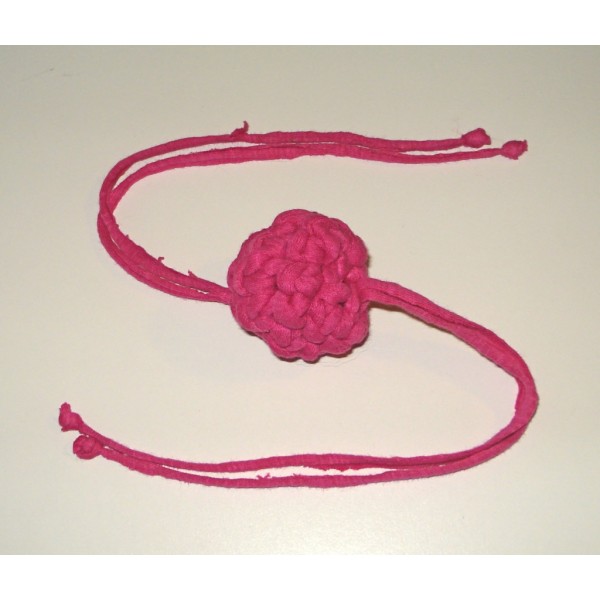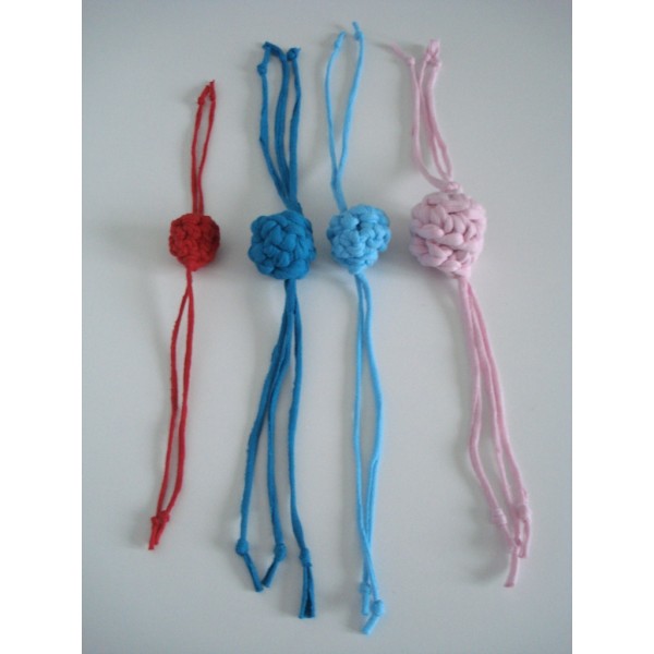 Hauska virkattu pallolelu kissalle. Sisältää hapsuja ja solmuja. Sopii hyvin saalistusleikkeihin. Kissa voi heittää tai raahata palloa omien mieltymystensä mukaan. Turvallinen, sillä ei sisällä irtoavia osia. Materiaali: Trikookude. Eri värejä. Pallon halkaisija noin 4 cm. Hapsujen pituus noin 15 cm. Voidaan pestä pesukoneessa pesupussissa. Voit halutessasi toivoa lelun tehtävän myös lempiväreistäsi. Valitse tällöin valikosta vaihtoehto "Toiveväri" ja ilmoita tilatessasi 1-2 toiveväriä. Valmistaja: Lilinella
